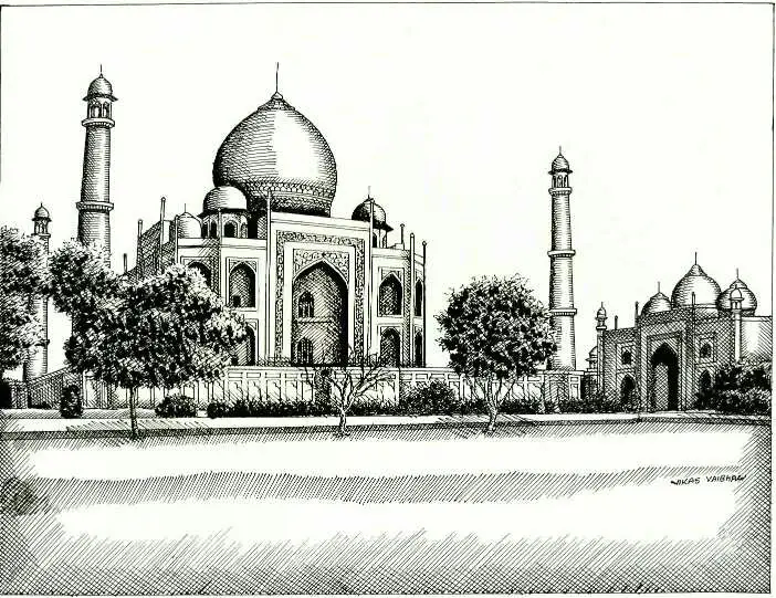 Taj Mahal, Agra (U.P)- ताजमहल का निर्माण मुगल सम्राट शाहजहाॅं ने अपनी पत्नि मुमताज महल की याद में करवाया था। ताजमहल मुगल वास्तुकला का उत्कृष्ट नमूना है। इसकी वास्तुशैली फारसी, तुर्की, भारतीय और इस्लामी वास्तुकला के घटकों का अनोखा सम्मिलन है। ताजमहल आगरा में यमुना नदी के दक्षिण तट पर हाथी दांत एवं सफेद संगमरमर से बना एक मकबरा है। इसका निर्माण 1632 में मुगल सम्राट शाहजहाॅं द्वारा अपनी पसंदीदा पत्नि मुमताज महल के मकबरे के लिये शुरू करवाया था।