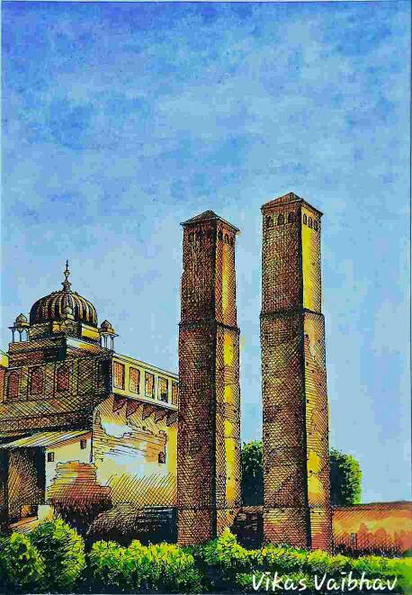 Sawan Bhadon Pillers, Orchha (M. P.)- ओरछा झाॅंसी से 16 किमी॰ की दूरी पर म० प्र० की सीमा में स्थित एक सुन्दर, धार्मिक एवं प्राकृतिक स्थल है। झाॅंसी-मानिकपुर रेलवे लाईन पर स्थित ओरछा रोड स्टेशन से ओरछा मात्र 6 किमी॰ की दूरी पर स्थित है। श्री रामराजा मन्दिर के मुख्य द्वार के सामने 25 फुट ऊॅंचे दो स्तम्भ खड़े है, जिन्हें सावन भादों के नाम से जाना जाता है। किवदंती है कि सावन भादों में जब दोनों स्तम्भ मिलते थे तो इन से संगीत की लहरें उत्पन्न होती थी। अतः लोग इन स्तम्भों को बड़ी श्रद्धा से देखते थे। इसका निर्माण राजा वीर सिंह जू देव प्रथम (1606-1627 ई.) ने करवाया था।