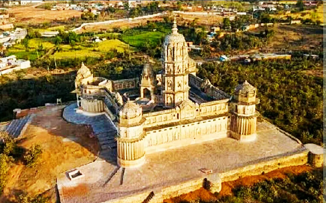 Laxmi Temple, Orchha (M.P.)- ओरछा झाॅंसी से 16 किमी॰ की दूरी पर म० प्र० की सीमा में स्थ्ति एक सुन्दर, धार्मिक एवं प्राकृतिक स्थल है। झाॅंसी-मानिकपुर रेलवे लाईन पर स्थित ओरछा रोड स्टेशन से ओरछा मात्र 6 किमी॰ की दूरी पर स्थित है। ओरछा में यह मन्दिर रामराजा मन्दिर से एक किमी॰ पश्चिम दिशा में पहाड़ी के ऊपर बना है जो दूर से दिखाई देता है। इस का निर्माण महाराजा मधुकर शाह ने करवाया था जिसे वीर सिंह जू देव ने 1618 ई॰ में पूर्ण करवाया। यह बाहर से देखने में त्रिकोण लगता है पर भीतर से चैकोर है।
